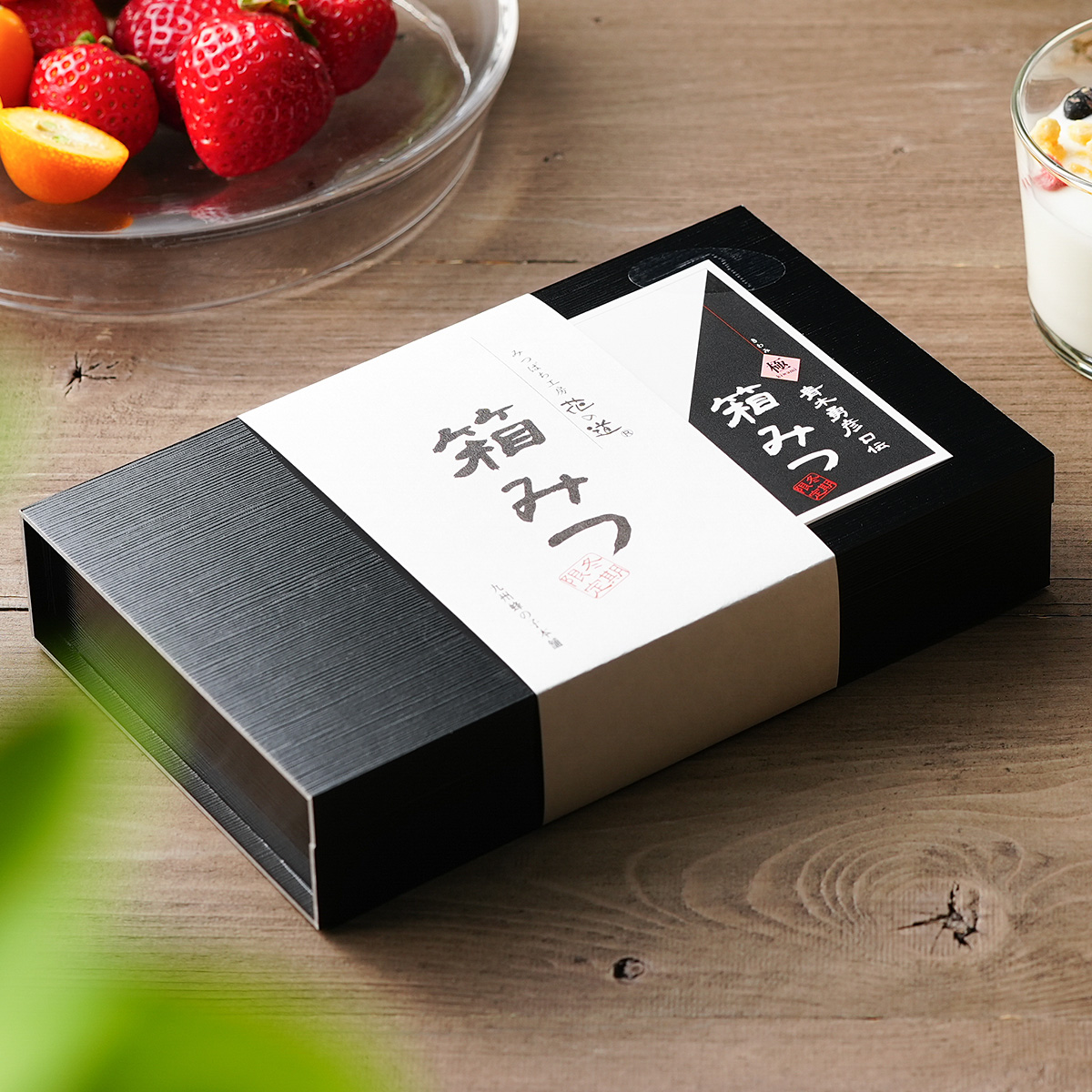 はちみつは、晩秋から冬にかけて真っ白い結晶状態に変化していきます。これは、はちみつがブドウ糖でできている本物の証なのです。この「箱みつ」は当本舗がこれは最高の出来と納得した国産蜂蜜だけを箱に詰め、温度管理と手間を惜しまず、じっくり寝かせることで、コクと深い味わいを引き出した商品です。